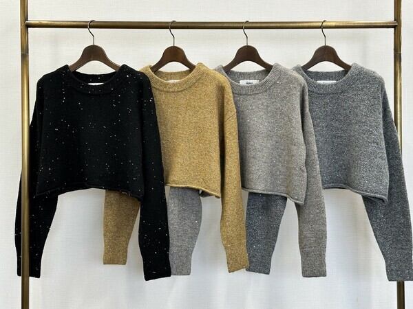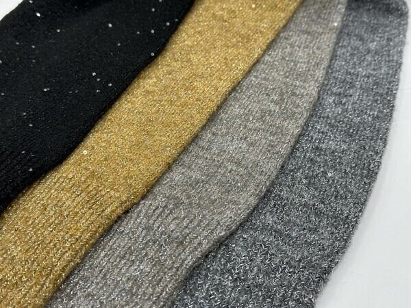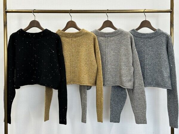 ブラック以外の3色は、糸が杢調なのでそこまでスパンコールは目立ちません。