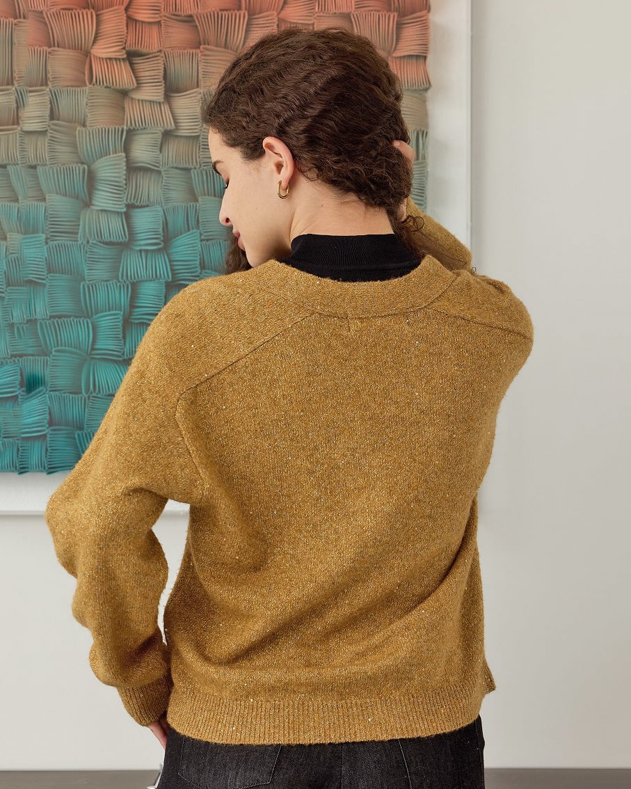 身幅には程よいゆとりを持たせ、着丈を少し短めに仕上げたVネックカーディガン。