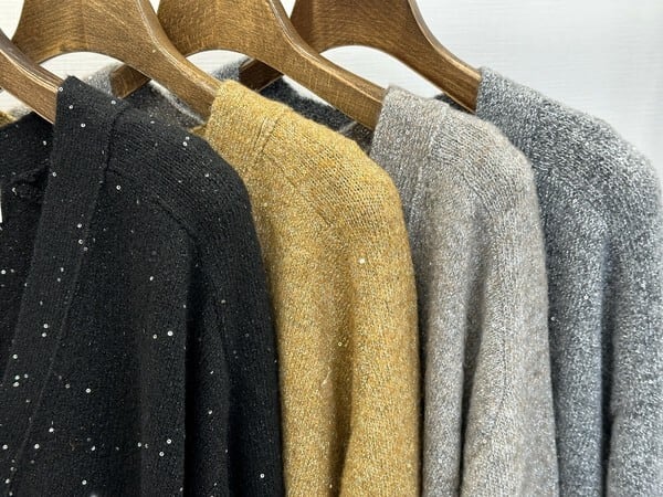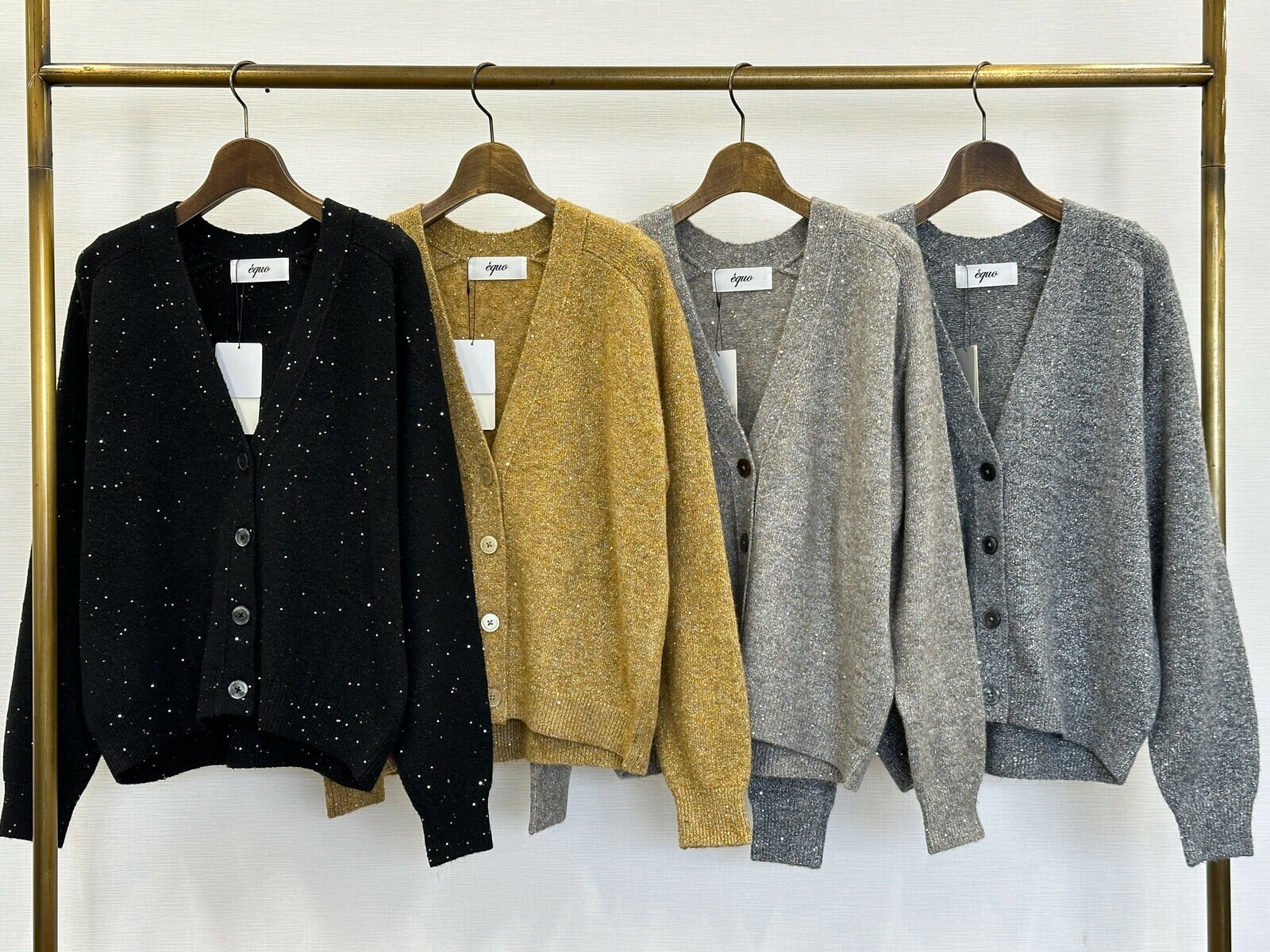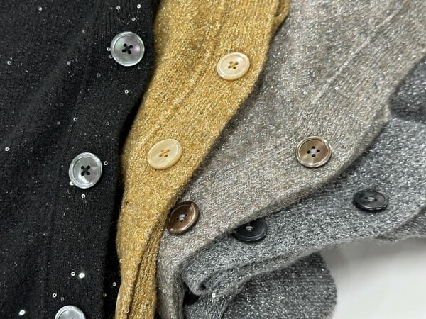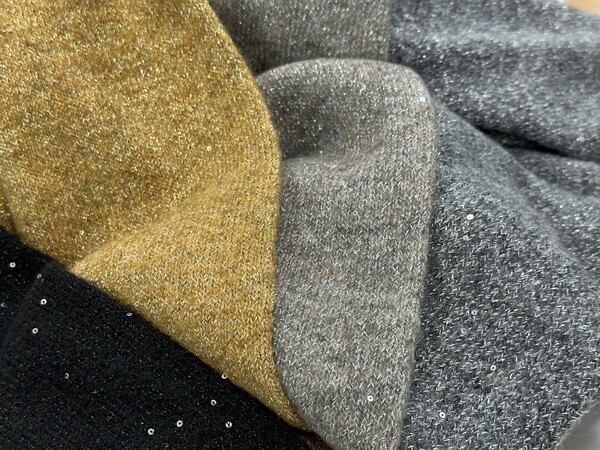 ブラック以外の3色は、糸が杢調なのでそこまでスパンコールは目立ちません。