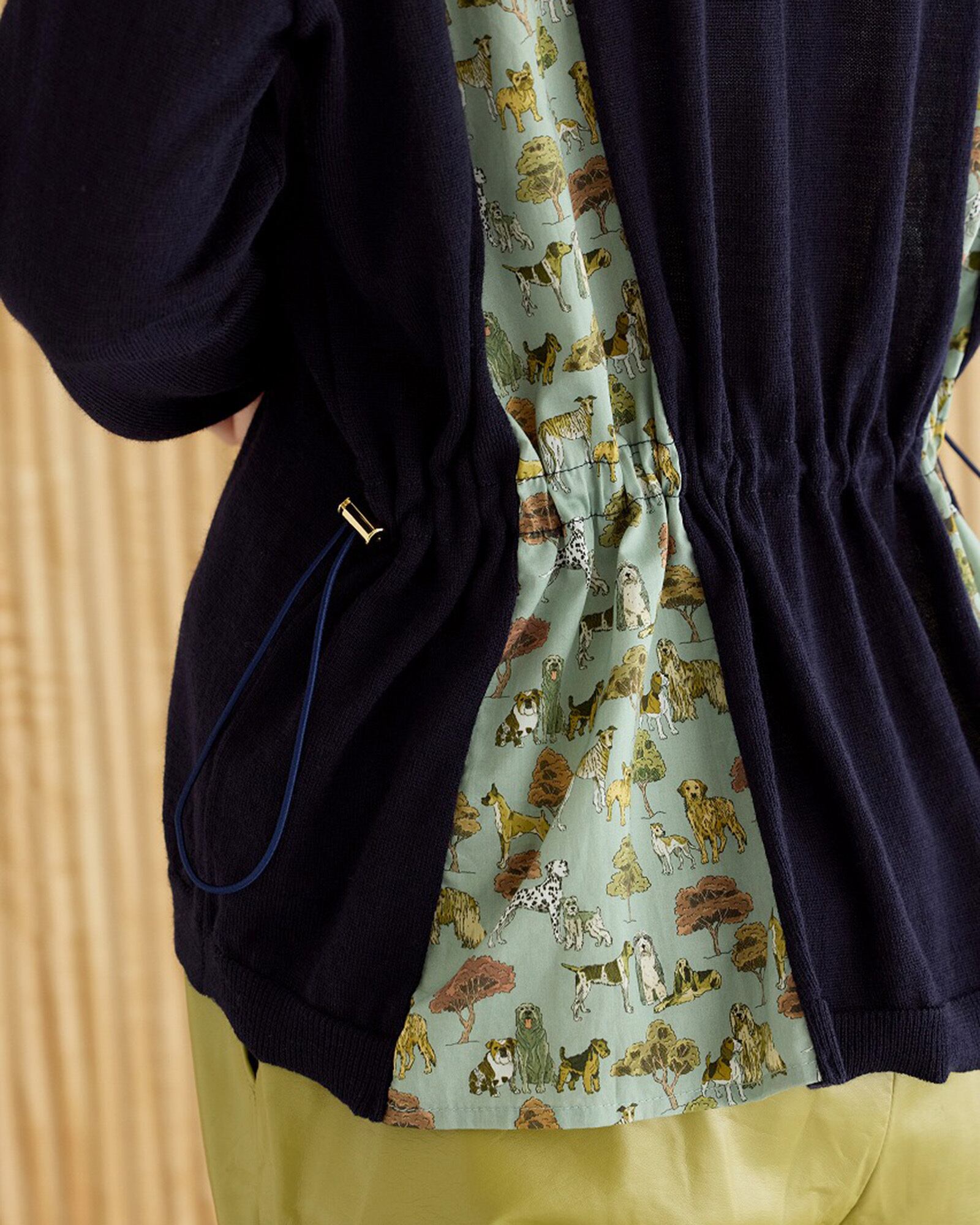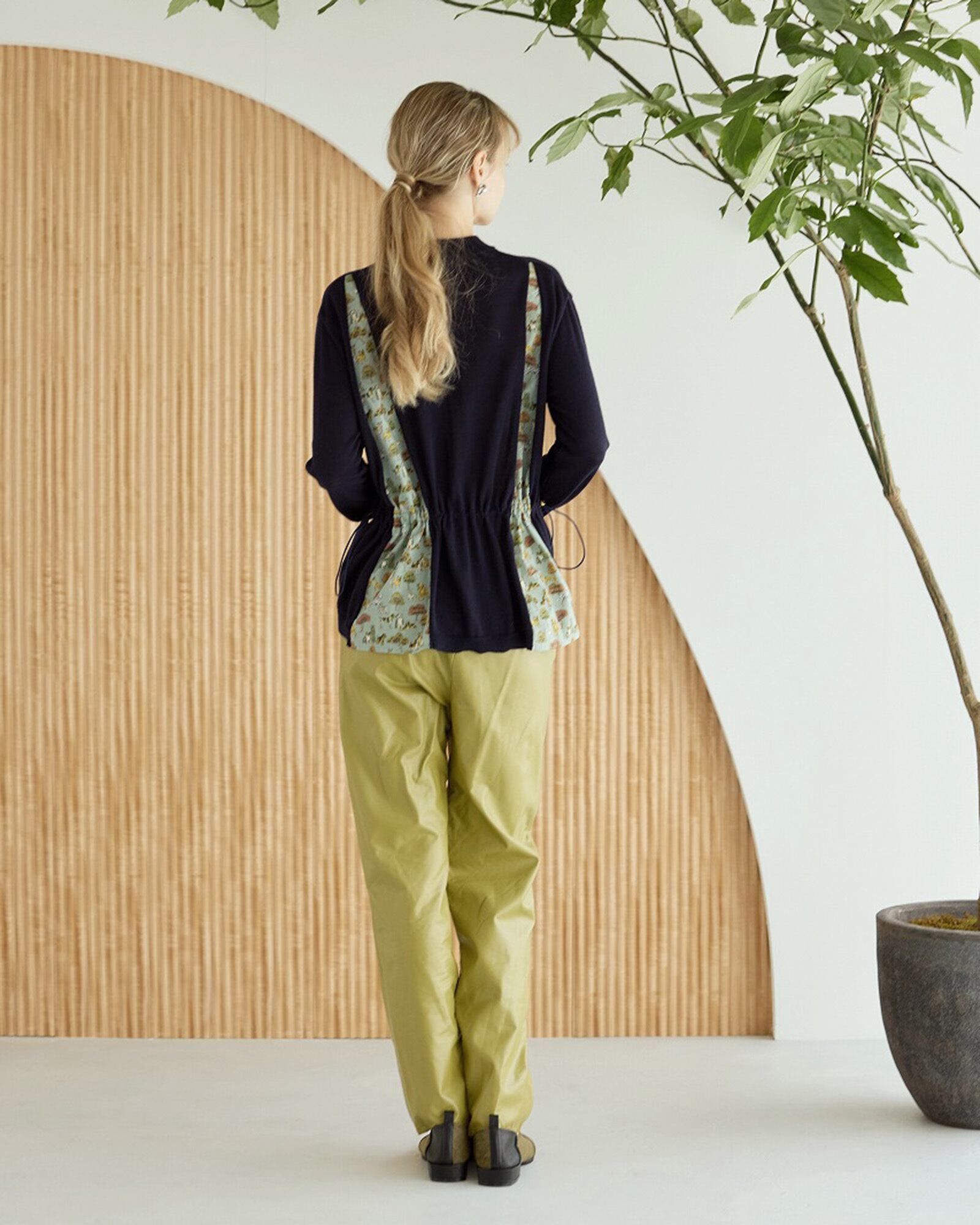 後身頃のウエスト位置にドローコードを通し、絞ることでシルエットのアレンジをお楽しみいただけます。
